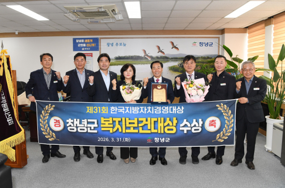 경남 창녕군(군수 성낙인)은 31일 오후 서울 공군호텔 그랜드볼룸에서 열린 한국공공자치연구원 주관 ‘제31회 한국지방자치경영대상’ 시상식에서 기관 종합부문 ‘복지보건대상’을 수상했다.